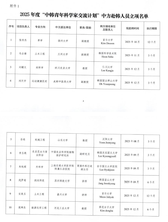 近日,中华人民共和国科学技术部国际合作司公布了2025年度“中韩青年科学家交流计划”立项名单。304永利土木永利3044玄美玉博士成功入选,将于2026年初赴韩国首尔大学(Seoul National University)开展为期12个月的科研交流与合作。
