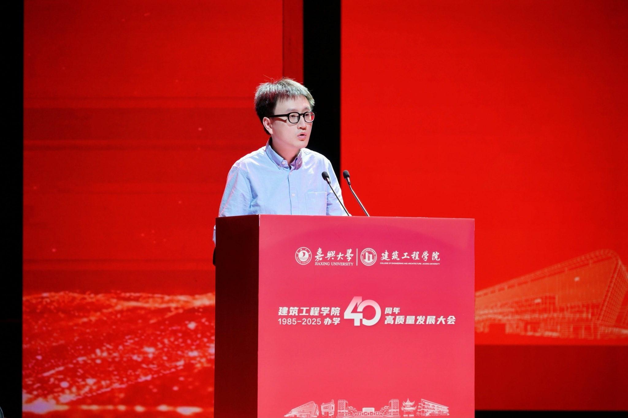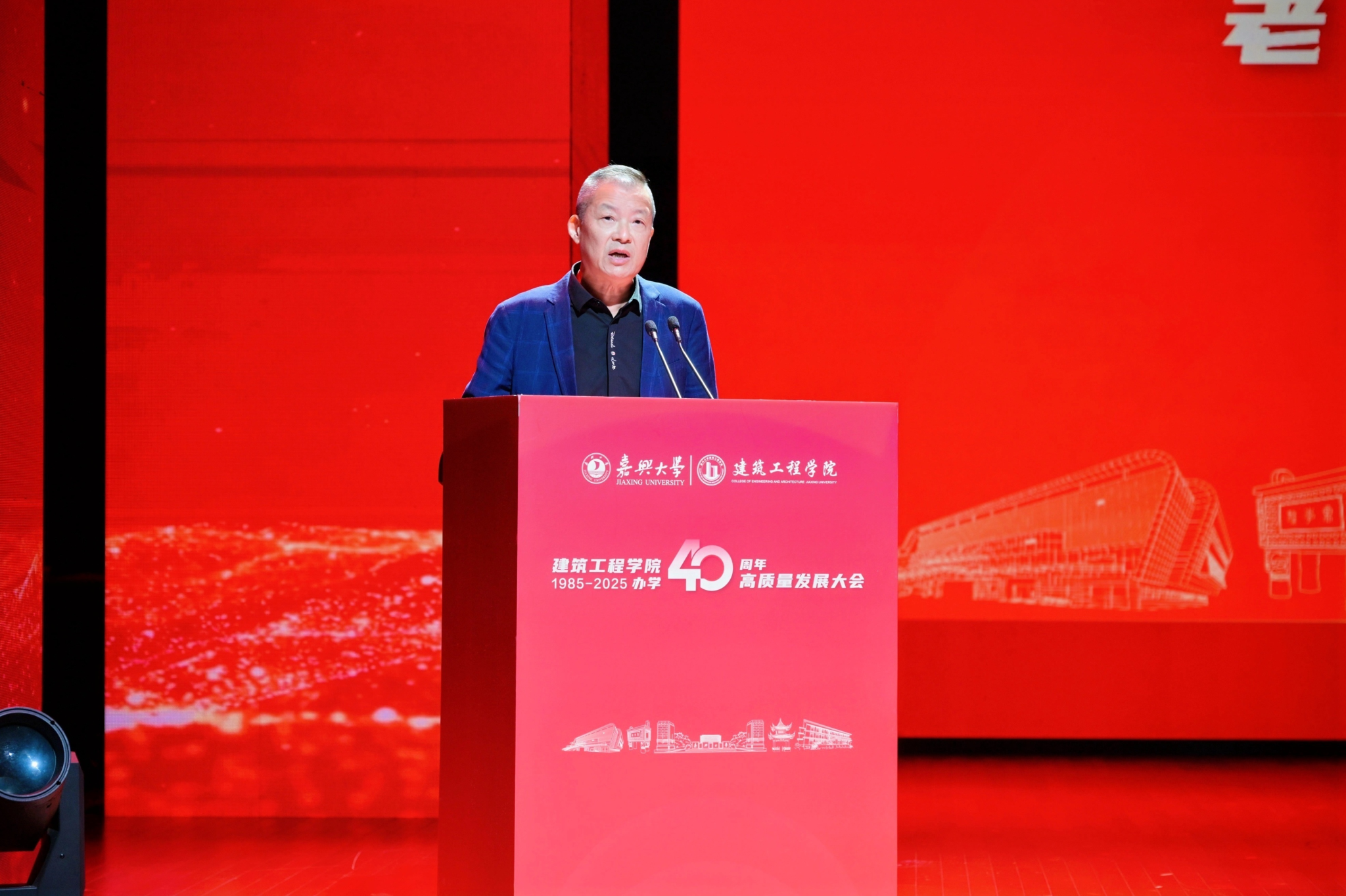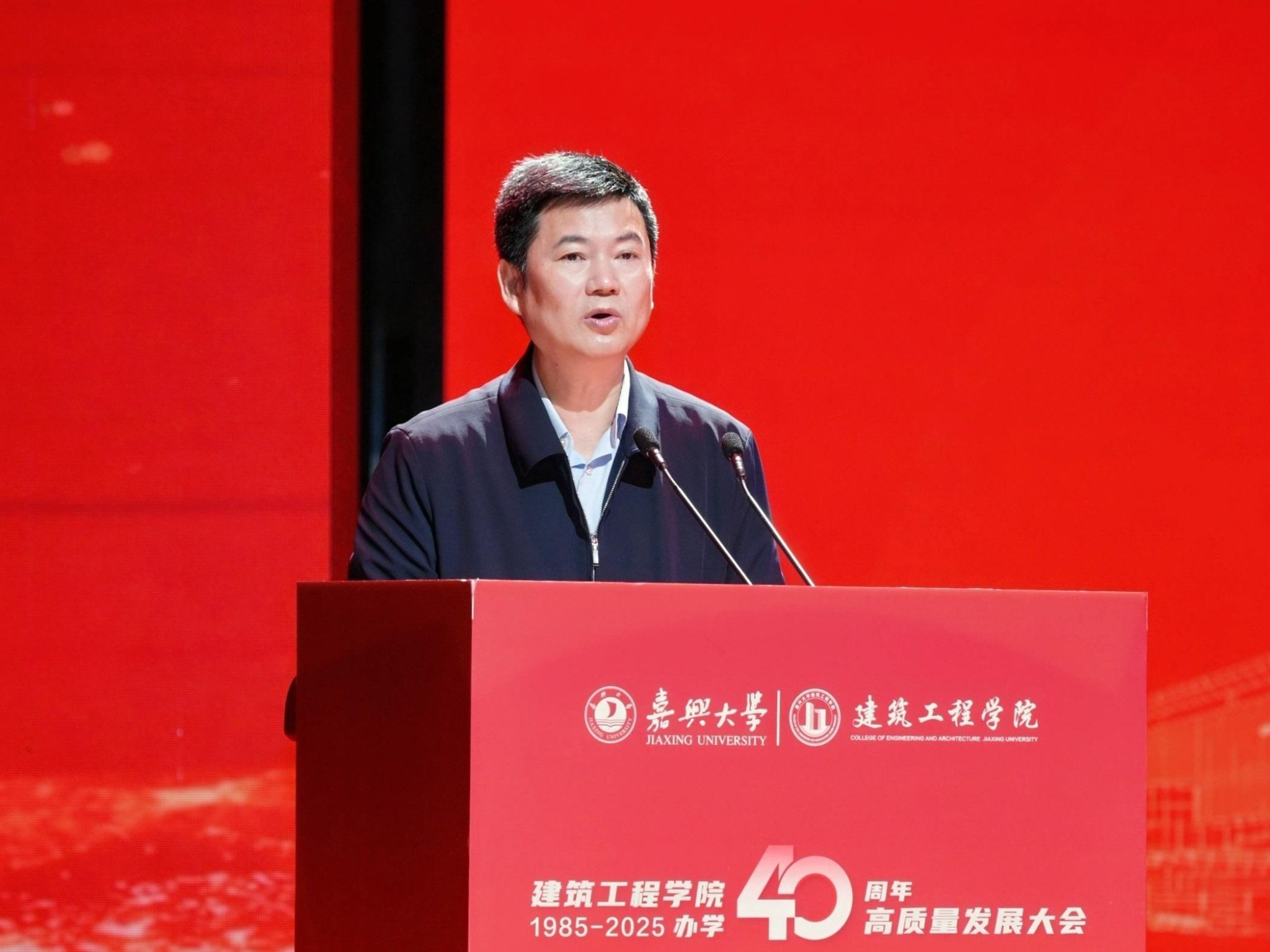 304永利党委书记沈希为大会致辞。他代表学校向长期以来关心和支持建筑工程学院建设与发展的各级领导、社会各界朋友、广大校友及辛勤耕耘在教育科研一线的全体教职员工致以敬意。他深情回顾,1985年,为满足地方经济建设对专业人才的迫切需求,原嘉兴高等专科学校土木工程系应运而生,自此踏上了服务嘉兴乃至全国城乡建设事业的征程。2000年,乘着高等教育管理体制改革的东风,嘉兴高专和浙江经专合并,土木工程系整合资源、凝聚力量,实现了从单一学科向多学科学院的历史性跨越,成为304永利服务经济社会发展的重要支柱。40年来,一代代建工人以服务国家建设需求为己任,以培育卓越工程人才为根本,在城乡建设、重大工程、产业升级等领域贡献智慧,用实干实绩诠释了“嘉大建工”的深厚底蕴与时代价值。