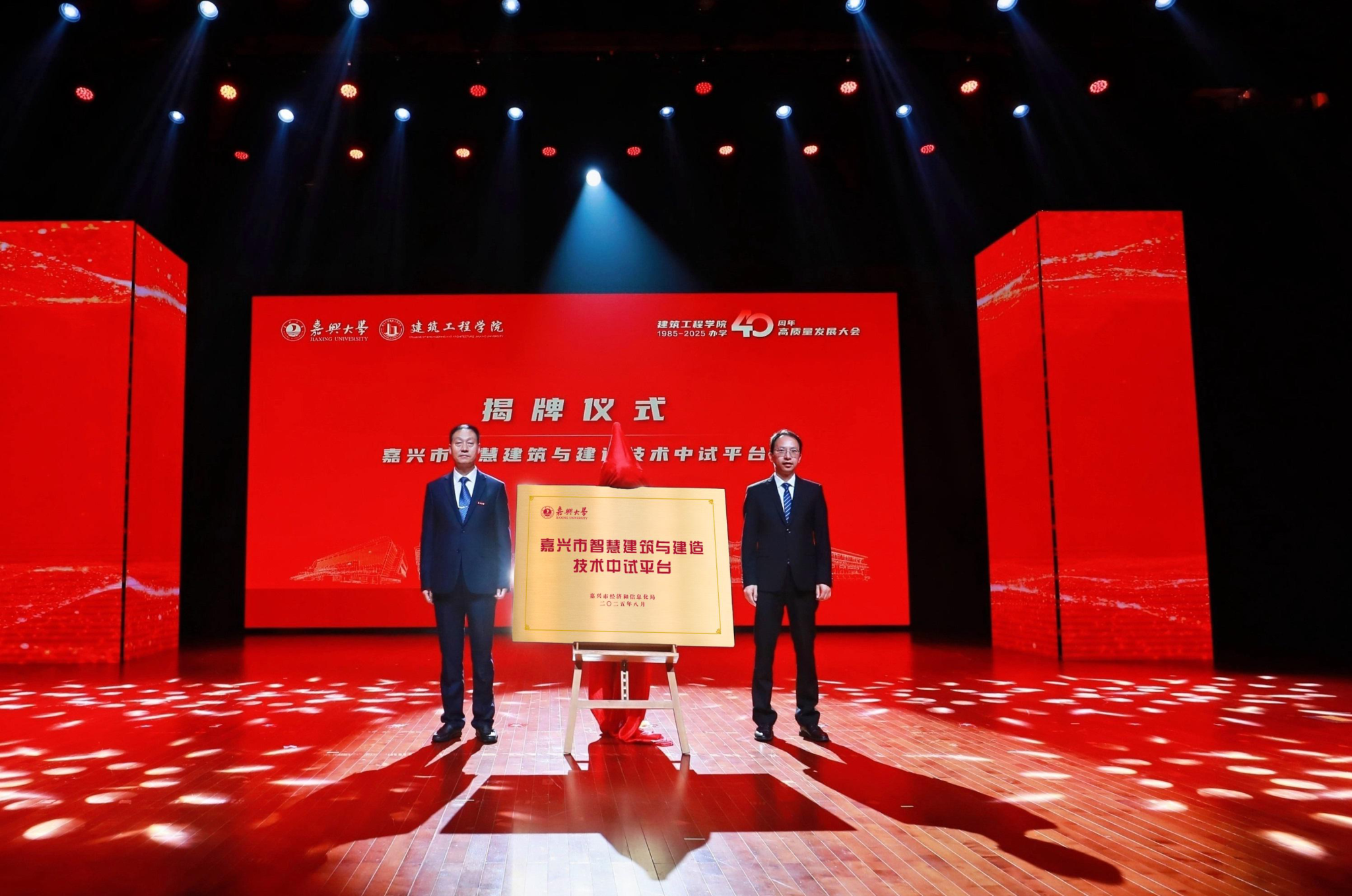 304永利科技处处长张景军和院长王恩茂共同为“嘉兴市智慧建筑与建造技术中试平台”正式揭牌,标志着学院在服务区域经济社会发展方面迈出重要一步。