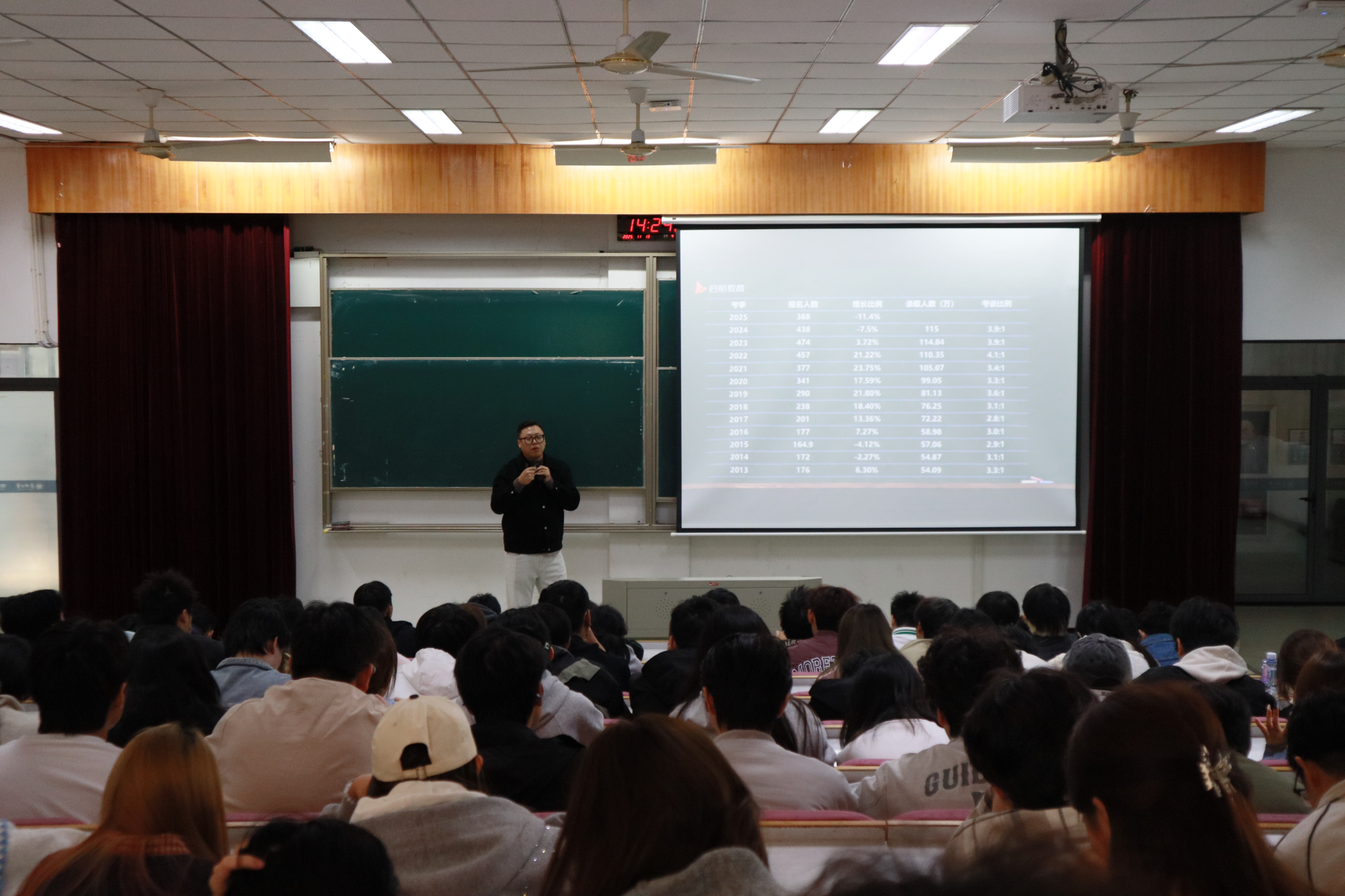 会上,启航考研刘老师结合历年考研数据与建筑工程领域专业特点,为2027届毕业生系统解读考研趋势与备考策略。针对学院的专业特色,他梳理了适配的院校与专业选择方向,为同学们提供更多元的发展路径。针对公共课各学科特性给出复习建议,帮助同学们明确不同阶段的学习重点;专业课则强调结合目标院校要求,聚焦核心复习内容,避免盲目备考。