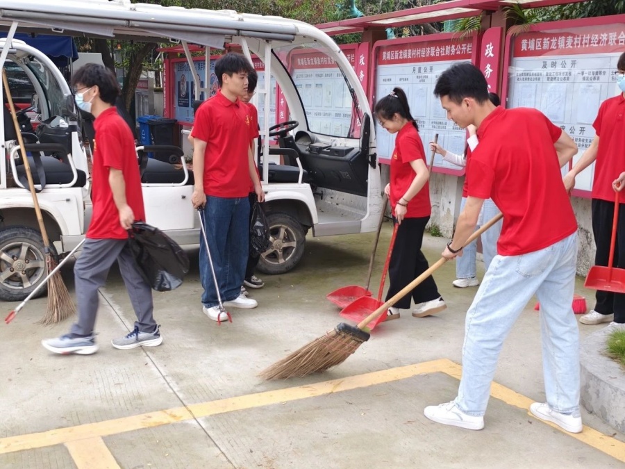在乡村卫生整治活动开始后,成员们一同前往新龙镇麦村村村委会并准备分配卫生整治前的相关事宜,随后跟随社工到提前进行调查好的部分卫生较差的乡道进行卫生整治,通过这项志愿让党员同志们更加深刻地了解到加强乡村环境卫生治理工作,提高乡民幸福指数,是建设美丽乡村的重要抓手。