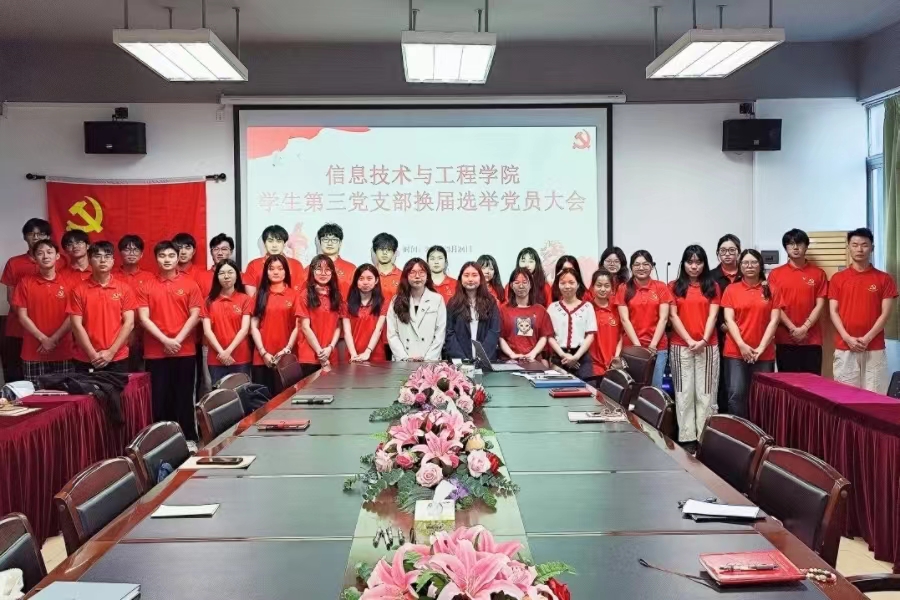 3月24日,信息技术与工程学院学生第三党支部召开换届选举党员大会,参与本次会议的有支部书记朱国华、教师党员陈钰纯、胡舒娅、龙霖以及全体学生党员。