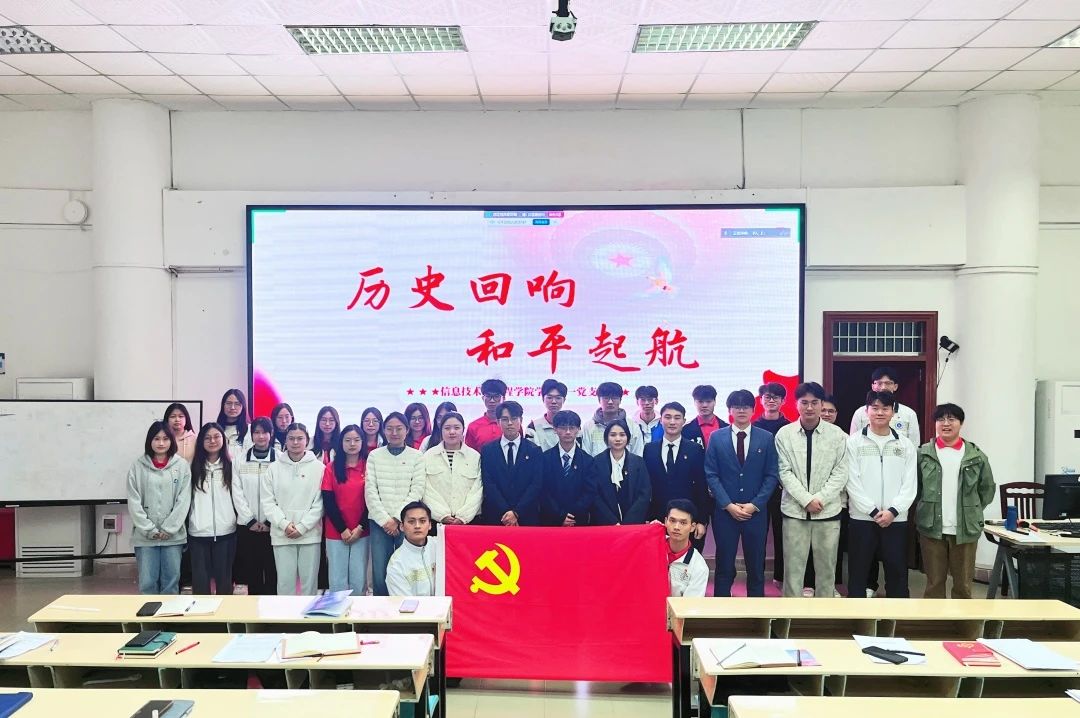 会议第一项议程,与会成员全体起立,奏唱国歌,在庄严肃穆的国歌声中,信息技术与工程学院学生第一党支部预备党员转正通表大会正式拉开序幕。