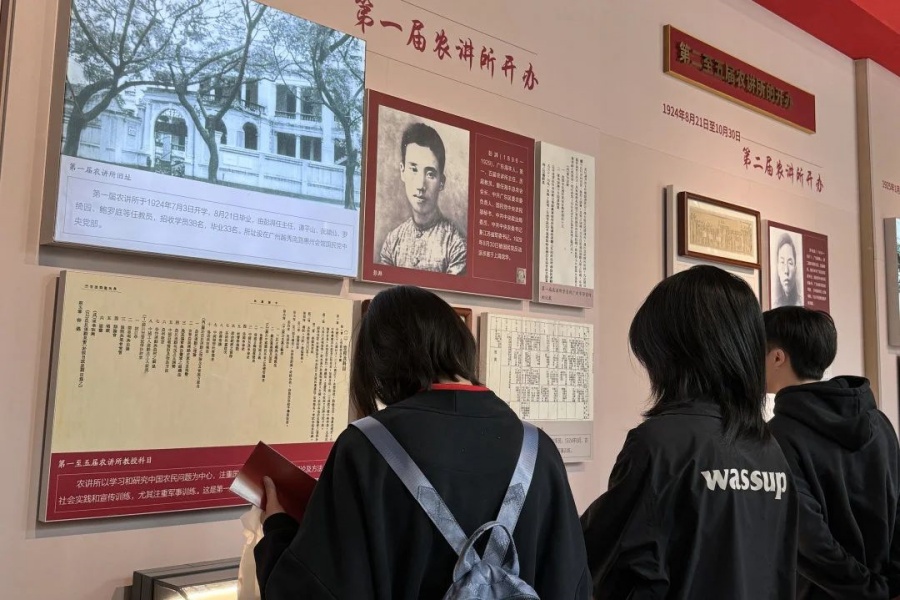 在观影厅中,支部党员同志观看曾经那段艰苦历史的影像,了解农讲所的背景、成立起因、发展史,追忆往昔艰苦奋斗历程,更加深刻地感受那段革命峥嵘岁月。观影后,林晖杰表示广州农讲所,是中国革命历史上的一个重要里程碑。这里是中国农民运动精英的“摇篮”,他们传播革命理论,发展农运组织,开展武装斗争,为中国的革命事业播下了星星之火。胡舒娅表示这里的每一个历史人物都是值得学习的榜样,要学习他们的精神事迹。星星之火可以燎原,看到的每一段历史都是学习的过程,传承红色精神,不忘初心、牢记使命。