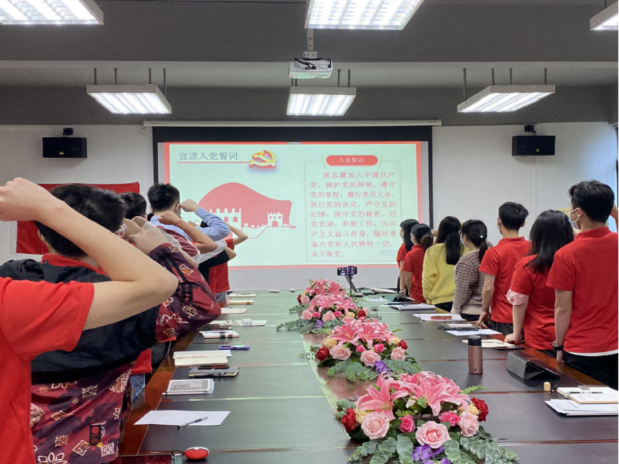 本次会议在庄严的国歌声中拉开了序幕。接着由梁健腾等3位同志依次向党组织汇报了一年来自己在思想、学习、工作、生活等方面的情况以及自己的不足之处,提出了改进的方向和决心,并表达了渴盼按期转为中共正式党员的愿望。随后由入党介绍人饶宏玉对梁健腾等3位同志在其预备期的表现进行评价,他们认真学习理论知识,提高思想水平,时刻用党员标准要求自己,在学生中起到模范带头作用,符合预备党员转正的标准。由支部副书记吴雁敏同志代表支部委员会报告梁健腾等3位同志在预备期间的教育考察情况。经支部拥有表决权的正式党员讨论投票决定,一致同意接收梁健腾等3位同志转为中共正式党员,由支部宣传委员林奕锐宣读了大会决议。全体党员起立重温了入党誓词,在铿锵有力的宣誓中,全体党员重新感受入党时的荣誉感和使命感,更加坚定了跟党走的信心和决心。会上,党支部书记饶宏玉对按期转正的同志表示祝贺,希望党员同志能进一步增强党性修养,不忘初心,砥砺前行。同时强调党员要更加严格地要求自己,不断提升思想觉悟,提高思想认识,强化责任意识,脚踏实地,严格遵守组织纪律,用心关爱身边的人和事,向优秀党员同志看齐,携手完善支部建设。