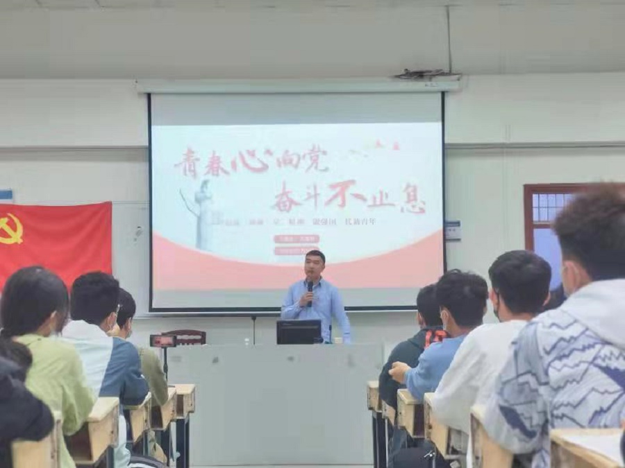 为了更好落实对青年学子的担当教育,加强我院学生思想品德建设,信息技术与工程学院于3月9日,在实训楼209课室举行了“青春心向党,奋斗不止息”为主题的书记思政第一课。参与本次会议的有信息技术与工程学院党总支书记关俊明、学院学生代表。本次思想政治教育课由关俊明授课。
