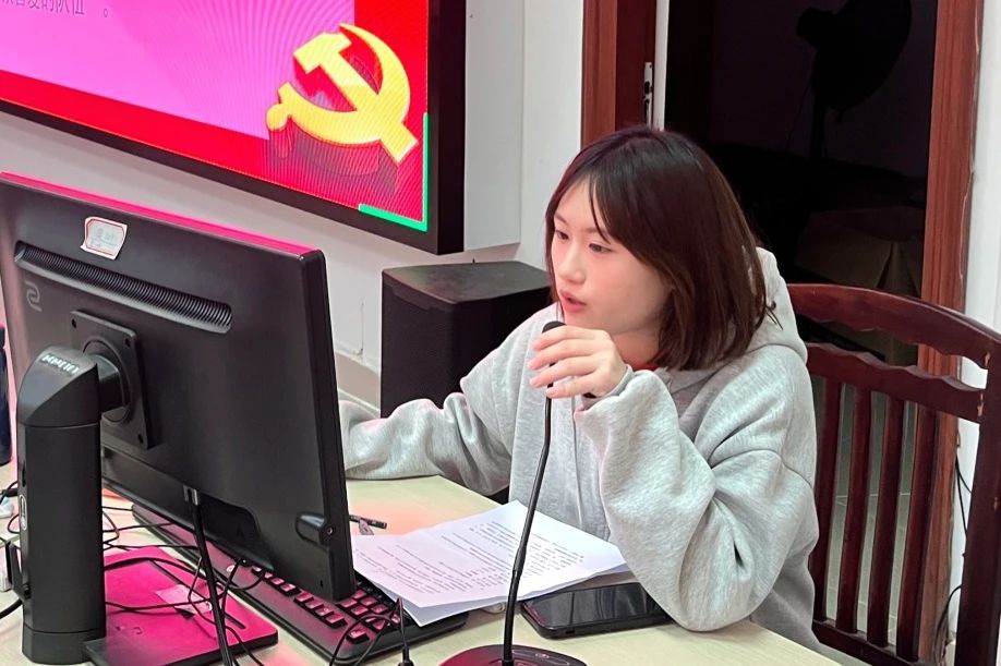 会议第三项流程,丘志平等5名同志分别从预备期内的政治思想、志愿服务、学习生活等方面向党组织汇报自己一年来的情况,表示在今后将会持续学习,加强对时事政治的关注,积极参与志愿服务活动,发挥党员先锋模范作用。
