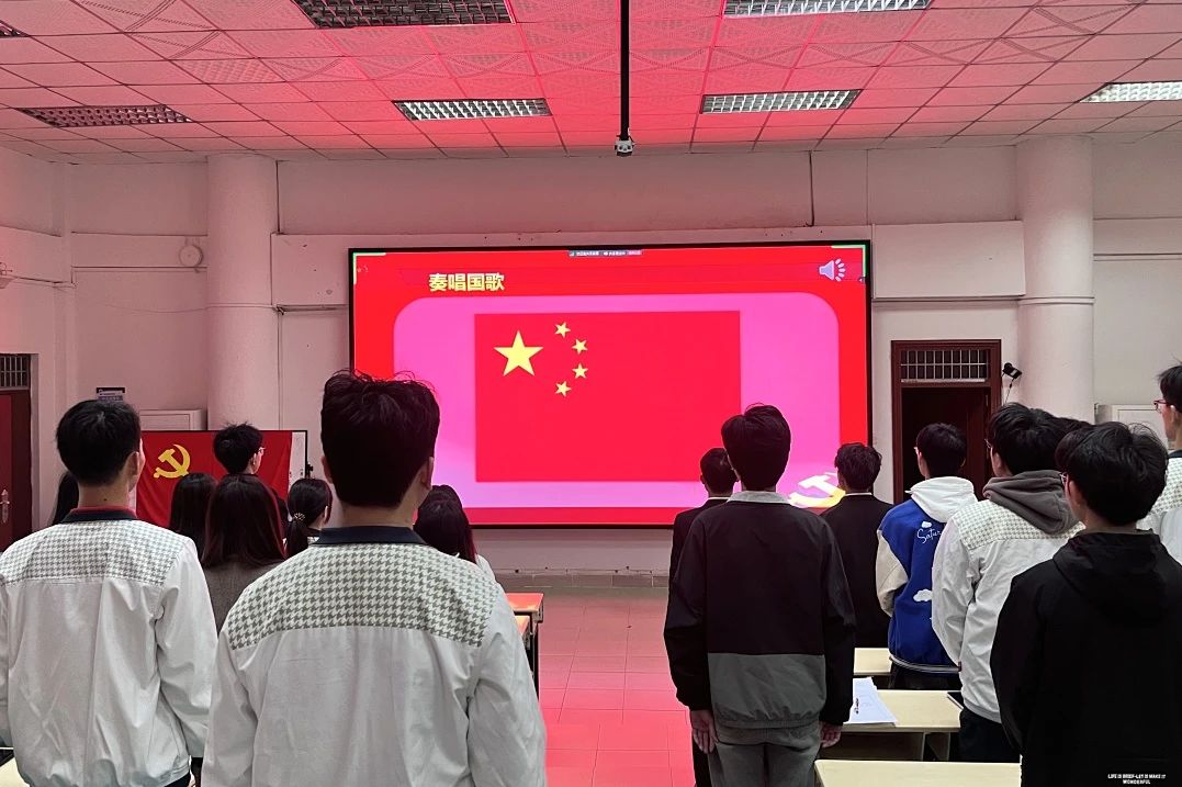 会议第一项议程,与会成员全体起立,奏唱国歌,在庄严肃穆的国歌声中,信息技术与工程学院学生第一党支部预备党员转正通表大会正式拉开序幕。