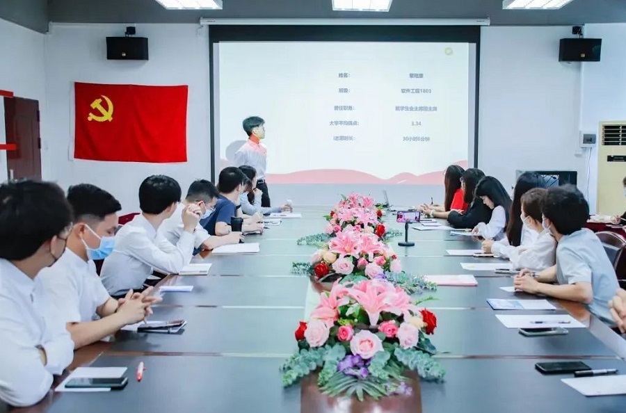 入党介绍人杨艳美同志分别从政治思想、学习成绩、生活作风等方面介绍预备党员在预备期的表现情况及意见,在对钟炜祺等14名预备党员表示肯定的同时,着重强调还要深入学习理论知识,关注时事政治,与时俱进,牢记党员身份,秉持为人民服务的宗旨,投身社会建设,在实践中磨练坚毅的党员品质。