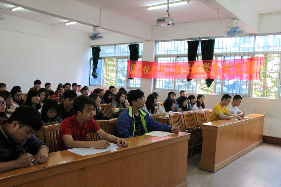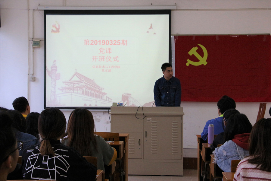 为保持党支部活力,壮大党员后备军队伍,信息技术与工程学院16(含17、18级)学生党支部于2019年3月26日中午十二点二十分,在第六教学楼306课室开展了信息技术与工程学院二级党校开班仪式和第一次理论课。参与本次活动的有信息技术与工程学院党总支书记林俊杰、16(含17、18)级学生党支部书记、团委书记兼17级辅导员郑开勋、16(含17、18级)学生党支部成员以及16、17和18级发展对象。