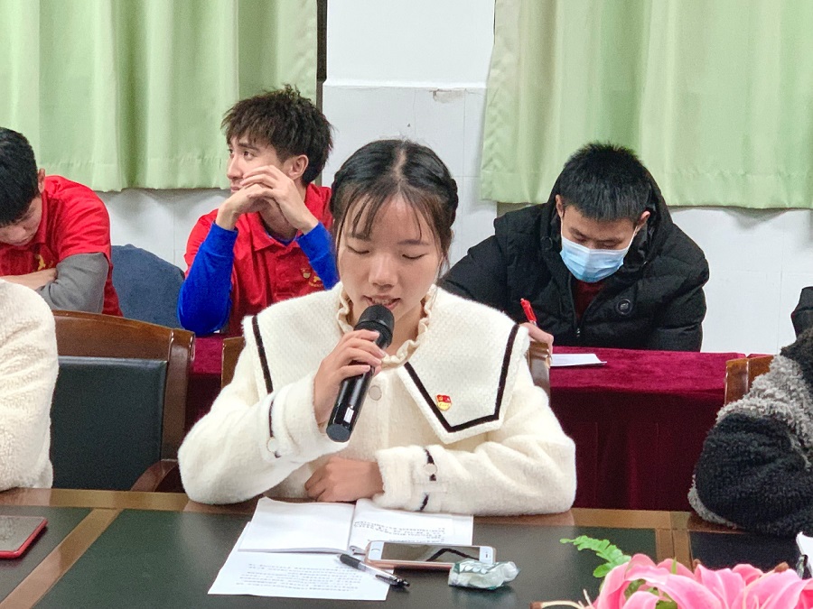 会议第一项议程由支部书记廖琪同志做开场白,并对一年以来党支部工作情况进行了简单的总结和汇报。她表示在校党委、学院党总支的领导下,认真学习相关的党史知识,学习习近平总书记在建党100周年大会上的重要讲话精神、党的十九届六中全会精神等相关的内容是尤为重要的。支部党员在日常学习或工作中要主动学习党史理论知识,增强自己的主观能动性。