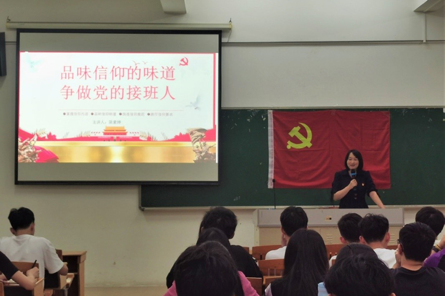 党课中,陈素婷从把握信仰的内涵、品味信仰的味道、找准信仰的差距、践行信仰的要求四个方面进行讲述,提出“未进党的门,先做党的人”,带领大家深刻品尝信仰的“味道”。首先以古今中外的例子旁征博引诠释信仰的内涵,回顾党的光辉历程,明确我国党的领导下社会主义的正确性与先进性,教育学员们要树立马克思主义理论信仰,坚定共产主义远大理想,实现国家富强、民族振兴、人民幸福的中国梦。课堂上还列举了许多社会主义革命、建设时期和新时代无数仁人志士、革命先烈、英雄模范等优秀共产党人的感人事迹,引导学员们细细品味信仰的“酸甜苦辣咸”,找准信仰的差距,结合近期学校迎评促建工作对学员们提出实现信仰的要求。