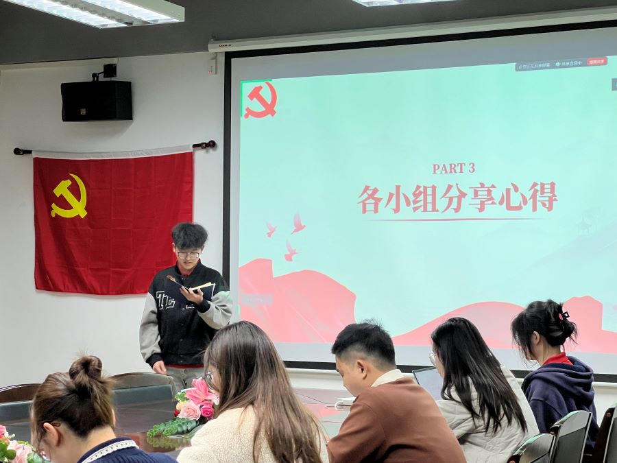 为深入学习贯彻习近平总书记在中央政治局民主生活会上的重要讲话精神,深刻领悟“两个历史主动”的重大判断,2月27日晚,信息技术与工程学院学生第三党支部在第六教学楼205会议室开展“深化全面从严治党,护航新时代使命”主题党日活动。出席本次会议的有学生第三党支部书记朱国华,教师党员甘志健、胡舒娅、朱家莹以及全体学生党员,会议由策划组孟清莹主持。
