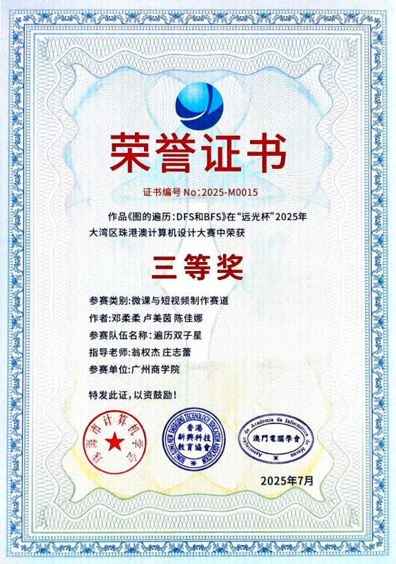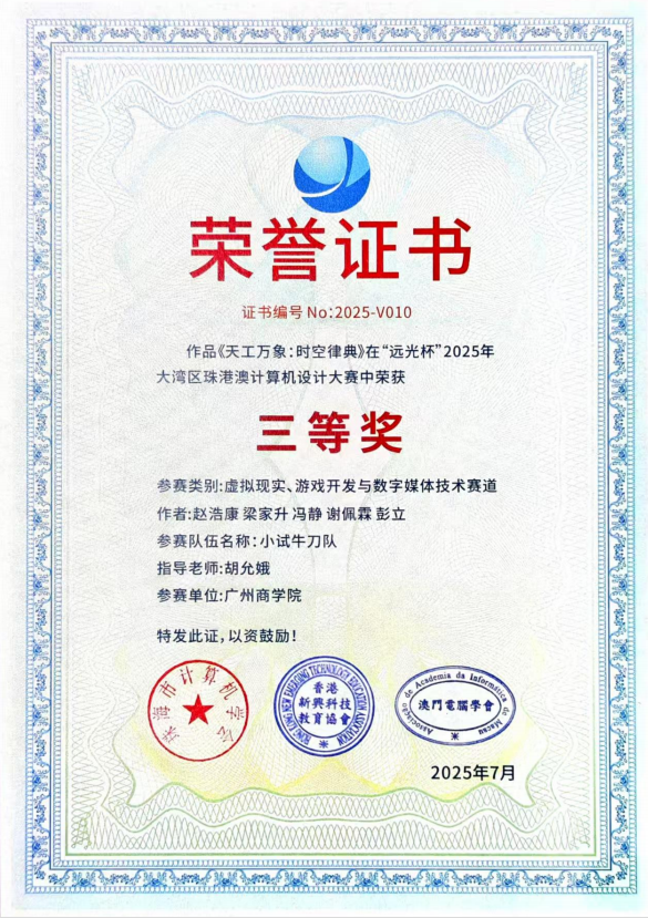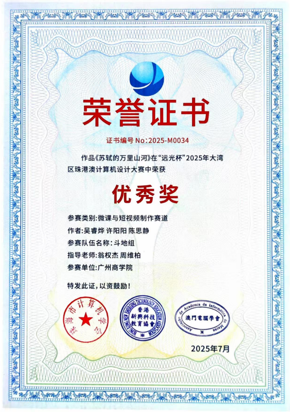 在学校的大力支持和学院的精心组织下,我院师生在刚刚落幕的2025年“远光杯”大湾区珠港澳计算机设计大赛中表现优异,参赛团队共斩获三等奖2项,优秀奖1项,为学院再添佳绩。