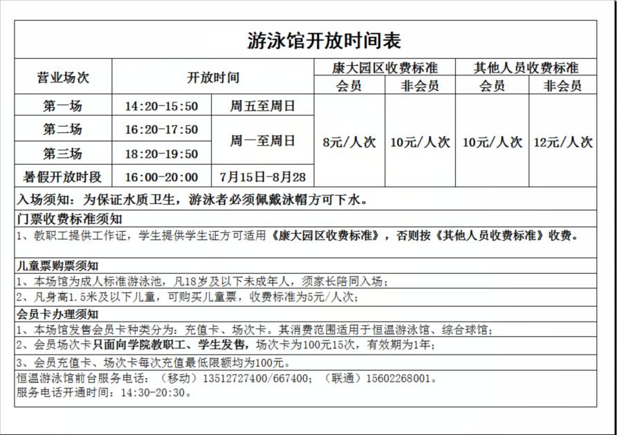 关于游泳馆开放时间的通知
