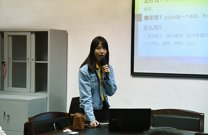 培训伊始,秘书长钟杏燕同学简单阐述了召开本次培训会的意义所在,其通过PPT课件和干部们上交的公文讲述了公文的类别以及干部们在撰写公文时出现的常见错误,并且做出格式方面的正确示范。干部们在台下认真听讲,积极做笔记。培训继续,组织部部长王俊祺同学上台就如何开展活动做了详细讲解,包括活动前期策划、彩排、和活动当天各部门的具体要求,也指出了在先前举办活动中出现的错误,希望干部对活动策划有更加深入的认知。培训末尾,副书记陈彦生同学发言道,参与公文的写作与活动的策划、开展有助于增强干部们工作的严谨性及工作执行力,是提高自身综合素养的平台,其鼓励干部们珍惜机会、积极学习。陈彦生同学提出,作为学生干部应该做到自信、自强、有素质、懂礼貌,在工作中要严谨踏实,其希望干部们在工作中个人的综合素质有所提高。至此,本次培训会圆满结束。