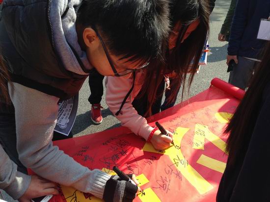 同学们积极踊跃的参加签名活动