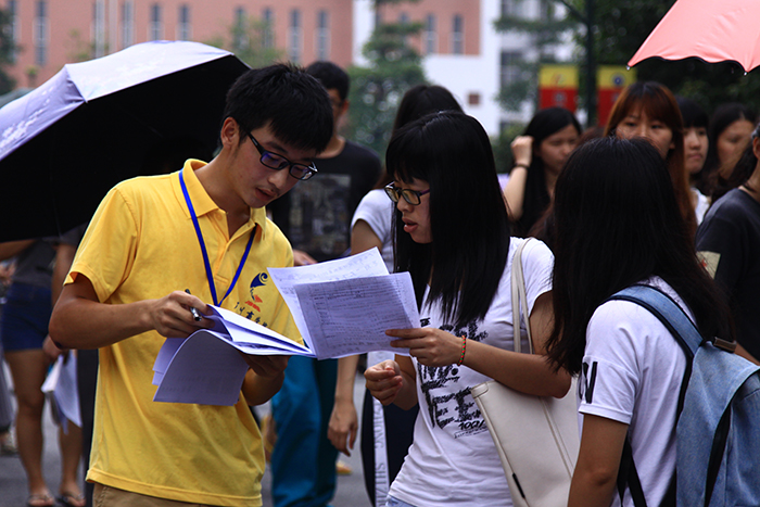 宣传初始时,天气的湿热让人感到浑身不舒服,但这并不能磨灭干部干事们的宣传热情。还没到下课时间,干部干事们已经身着明黄色工作服,在校道上等待同学们的到来。而对本次活动感兴趣或存在些许疑惑的同学,工作人员积极详细地为其解答,并对“三下乡”社会实践活动的内容作出系统性的介绍,让同学们对此次活动有大致的了解。