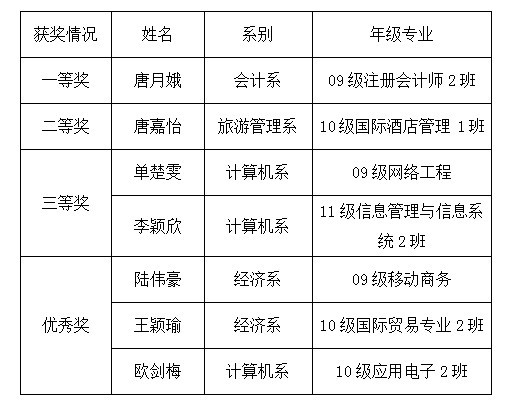 为了传播职业生涯发展理论,增强学生科学规划职业的意识,努力提高大学生的就业力与社会责任感,引导广大学生自觉树立正确的成才观和就业观,计算机系团委于12月2日在教学楼A206成功举办了第二届职业规划设计大赛决赛。现将大赛获奖名单公布: