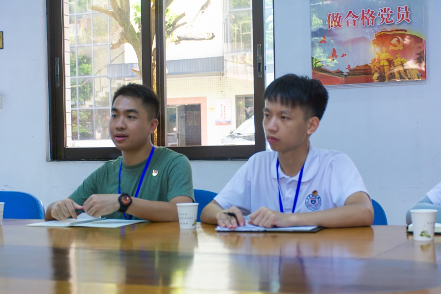 陈启康首先对服务队的到来表示热烈欢迎,希望队员们在接下来的日子里,能够有所收获。而服务队指导老师郑开勋则对服务队到来可能产生的打扰表示歉意,并对服务队的外出摆摊宣传和调研等问题进行沟通,也感谢镇政府能够对本次社会实践活动的大力支持。