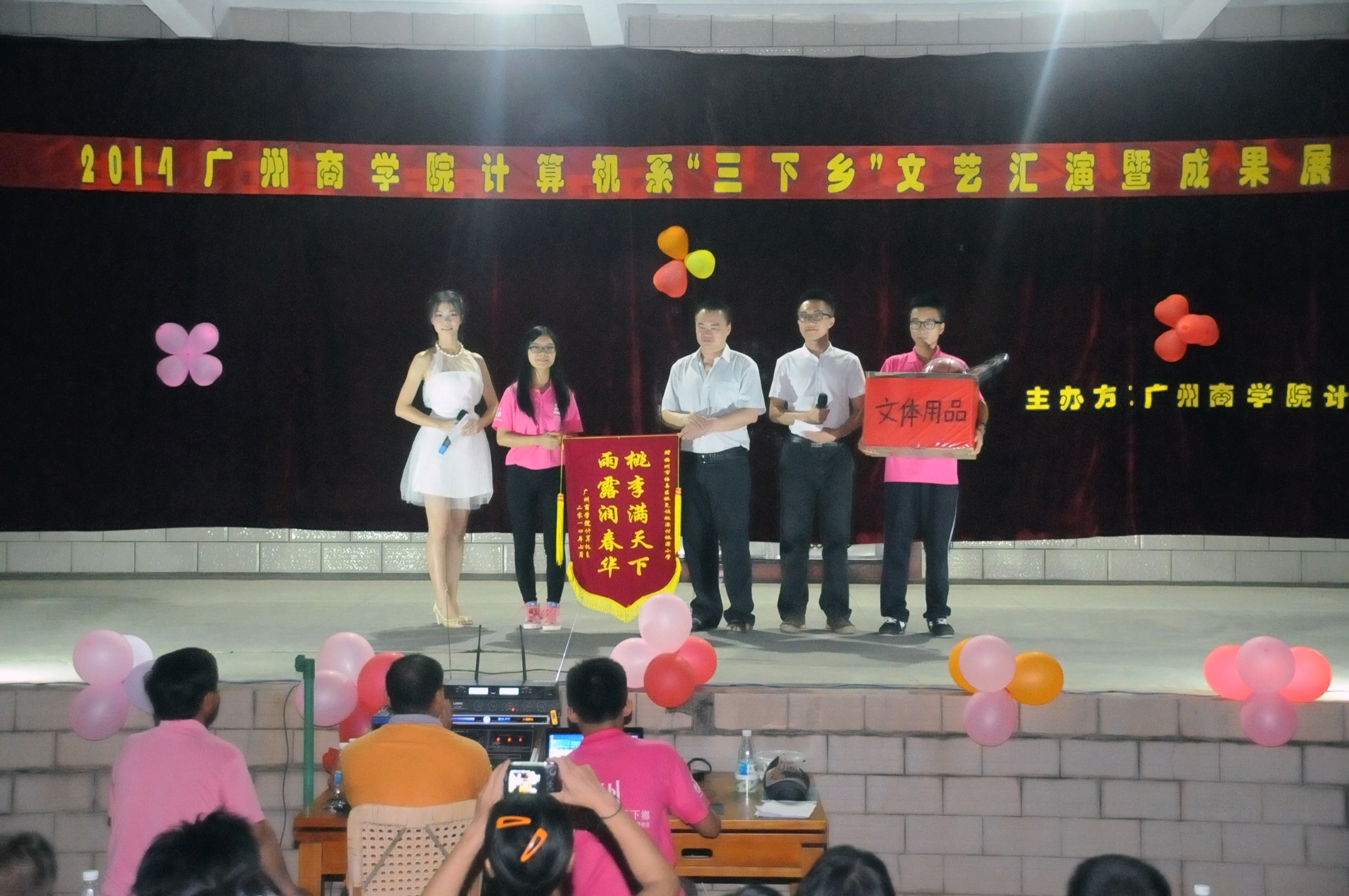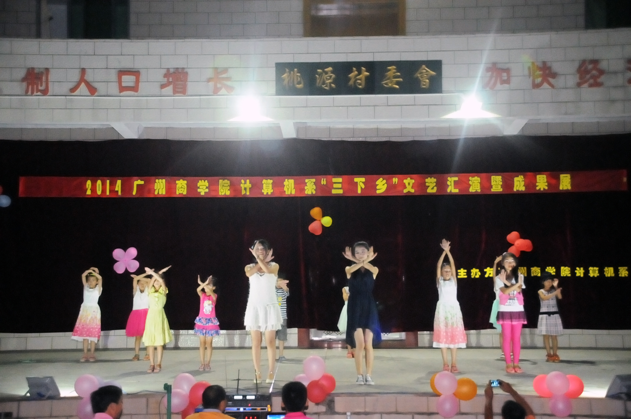 晚上8点,天公作美,队员们精心策划已久的晚会随着火爆的开场舞蹈顺利地开始了。随着桃源村领导、桃源小学校长和桃源村村民代表发言后,晚会正式开始。音乐班的小老师与孩子们的欢乐歌声让在场的观众露出了满意的笑容。随后的魔术表演和抽奖环节让晚会进入高潮。英语班小老师与孩子们的载歌载舞;历史班的小品《三顾茅庐》;舞蹈班的可爱企鹅舞;后勤组激情演唱的《海阔天空》;还有其他队员与孩子们的华丽走秀和最后的大合唱。这些节目都让在座的各位村民、孩子们传出欢乐的笑声。