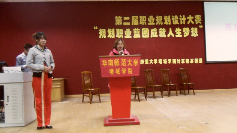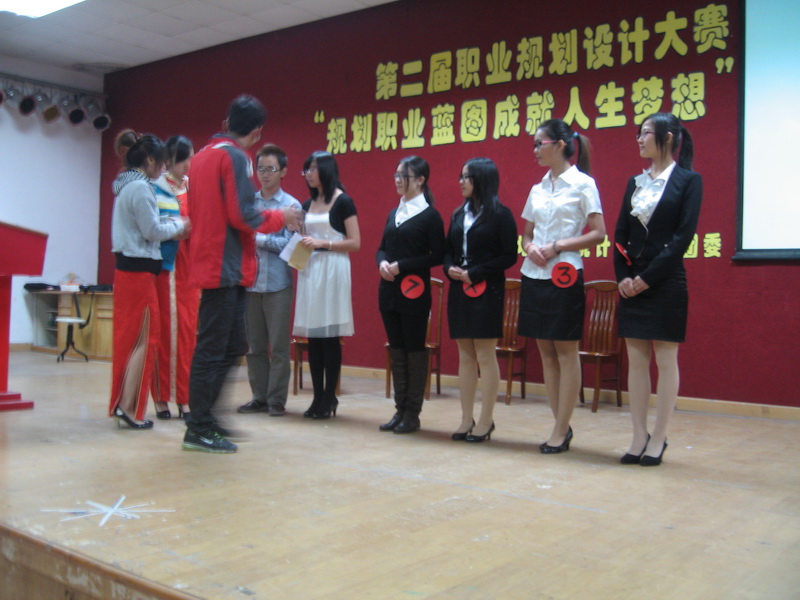 当晚的比赛在参赛者模拟求职者面试的场景中进行。8位自信十足的选手们分成两组,每四人一组上台向老师及同学们解说自己的职业规划。选手们利用个人视频、PPT的演示结合个人精彩流利的演说对自己的职业规划进行一番深入的剖析。在考官们犀利的提问和精彩的点评后,选手们对自我的规划有了一番新的理解,而场下的同学们也从中学会了不少关于职业规划的知识,比如怎样更好地进行自我认知等。比赛中场爆笑的小品缓解了场上的紧张的气氛,活跃着现场的气氛。在抽奖环节中,被抽中的观众也与大家一同分享了个人的职业理想。