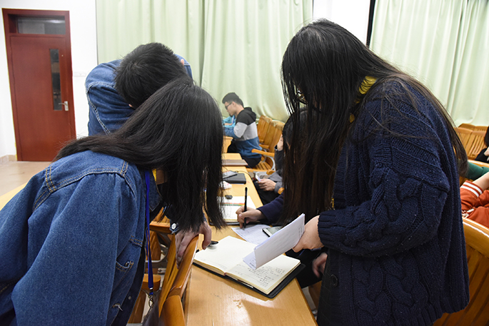 17日中午12点30分,参加宿舍门牌制作比赛的选手们带着其作品来到六教105门前参与评比。选手们的宿舍门牌设计各具宿舍特色,部分作品也颇具创意。宿舍门牌设计和制作增强了宿舍成员的团结协作,美化宿舍环境营造并创造良好的宿舍氛围,构建和谐宿舍。