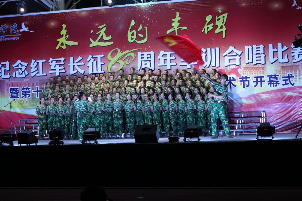 2016年9月21日晚,由广州商学院主办的“永远的丰碑”——纪念红军长征80周年军训合唱比赛暨第十届体育节、第十一届校园文化艺术节开幕式在广商田径运动场隆重举行。莅临本场比赛的领导和嘉宾有军训团团长李冲、校党委书记谭马利、副校长吕泉荣、校长助理贺浪萍、校长助理张忠福、以及各学院、部、处的领导和老师。