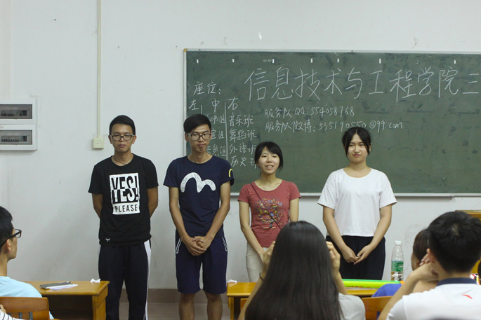 信息技术与工程学院三下乡服务队见面会于2016年6月23日19点30分在广商C606举行,经过3天的面试,脱颖而出的服务队队员终于在此欢聚一堂。信息技术与工程学院三下乡服务队指导老师谭小龙、王轻纱出席本次见面会。