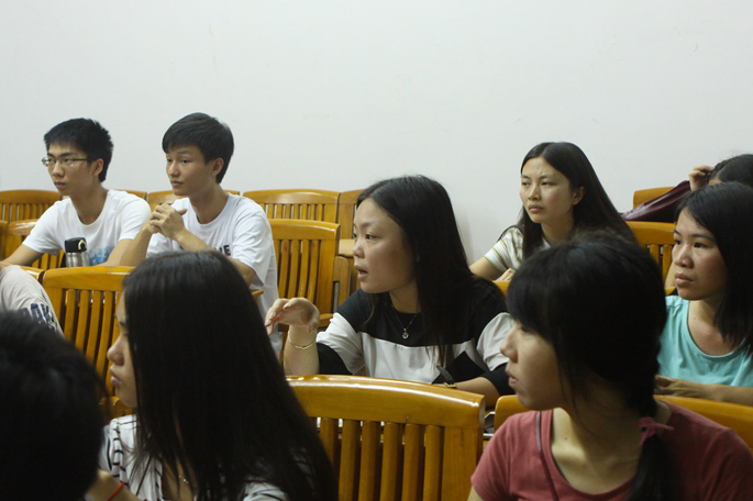 紧接着,服务队六个小组的成员分别上台进行了简单的自我介绍,队员之间有了初步的认识。而后,李起勃同学就各组在彩排与三下乡活动的工作做了具体的介绍,并解答了队员们提出的关于三下乡期间的活动安排及食宿安排等问题。最后,谭小龙老师希望队员们在出发前要做好充足的工作准备,以便到达目的地后能迅速地开展各项活动。