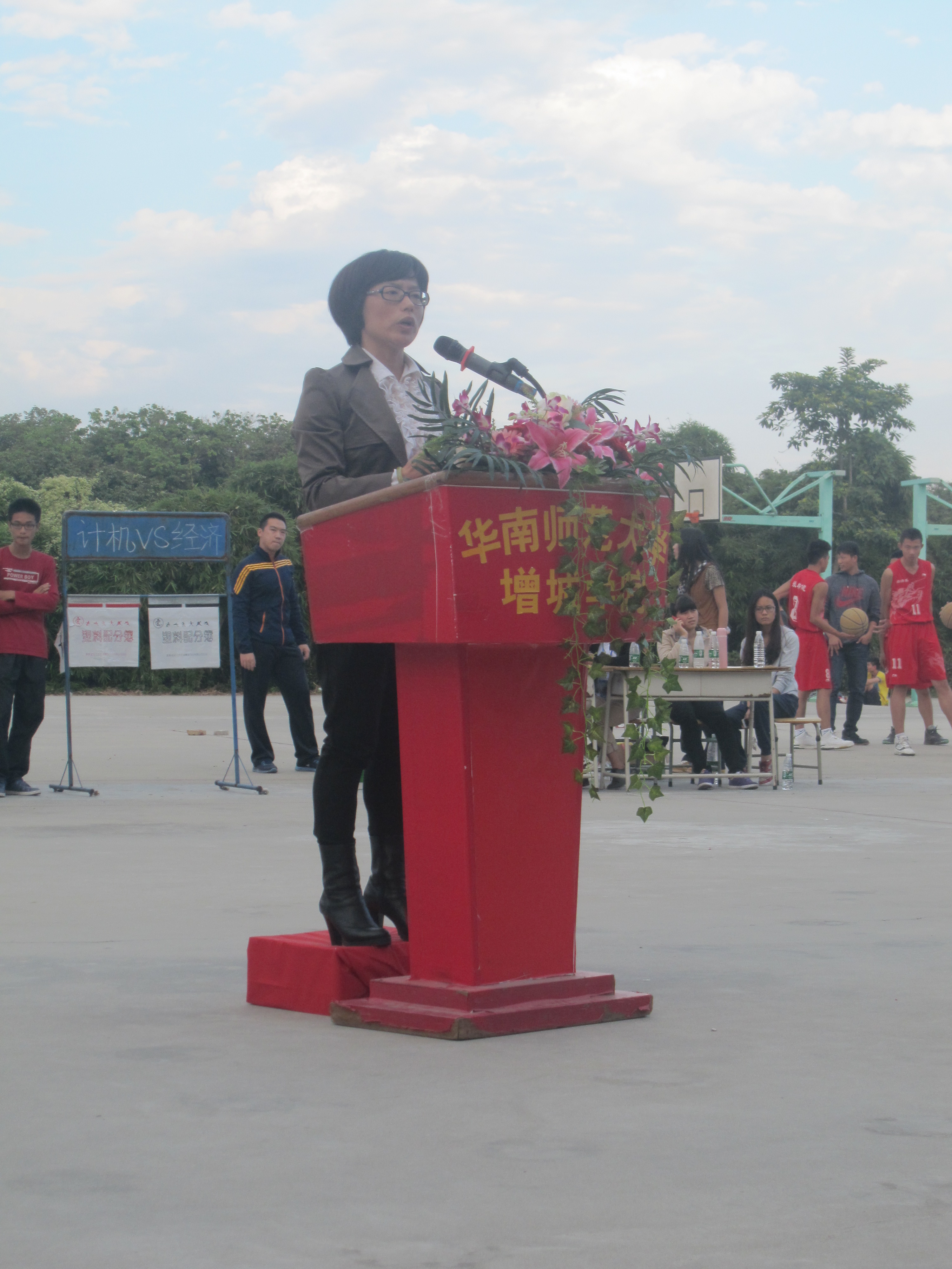 2013年11月21日,计算机系与经济系在篮球场上进行了“新生杯”篮球赛的决赛。出席本次比赛的嘉宾有:学院党委副书记张秋艳、学院团委书记何柏略、计算机系主任陶培基、计算机系党总支钟远辉书记等。