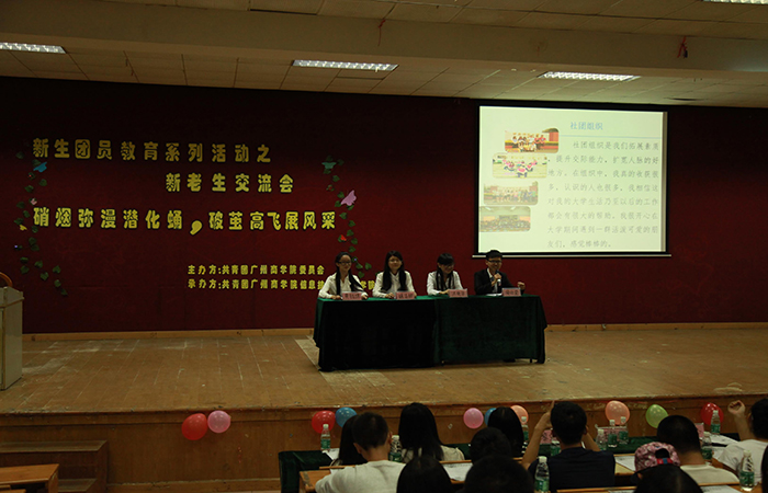 为了让广商信息学院的新生更好地适应大学生活,帮助其解答疑惑,广商信息技术与工程学院团委于2015年10月25日19点30分在教学楼A206举行主题为“硝烟弥漫潜化蛹,破茧高飞展风采”的新老生交流会。莅临本次活动的有信息学院团委书记王轻纱老师、优秀学生代表、15级学长制学长,各兄弟院系代表以及信息学院15级新生。