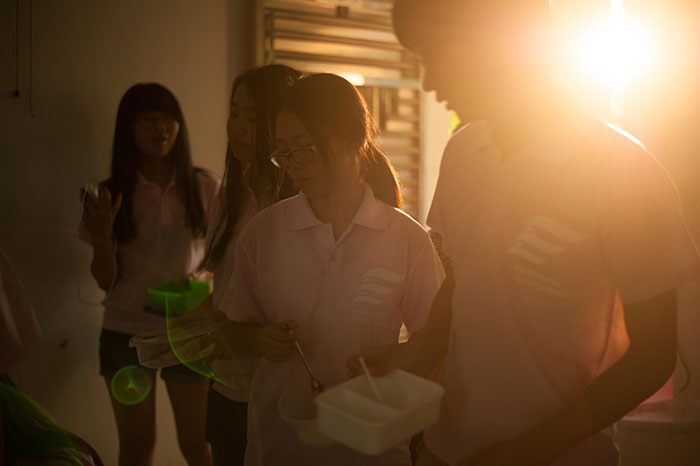 过后,队员们迎来了在三下乡的第一顿饭,王轻纱老师与后勤组的成员通力合作下厨,队员们每每品尝一口饭菜,都感受到满满的家庭情,在服务队里更是多了一份归属感。