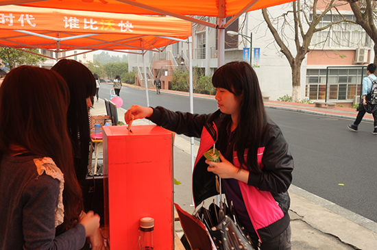 以“病魔无情,增院有爱”为主题的由计算机系团委举办的爱心募捐摆摊活动2014年3月20日中午时分在学院舞蹈室前持续开展。此次募捐摆摊活动主要为了帮助我系被病魔缠身的张海燕同学能够得到更好的治疗和尽早康复。