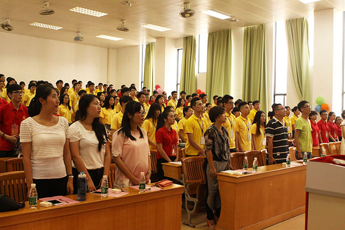 大会伊始的第一个议程便是奏唱国歌,领导老师和三大组织干部干事们的歌声整齐而有力,唱出了大家心中的爱国情。紧接的是三大组织学年工作视频,视频中的每一分每一秒都充满了干部们点点滴滴的回忆,从开学的迎新生到现在,每一个活动中都看到干部们辛勤工作的身影,也充满了干部们的喜怒哀乐。干部们为活动奔波、忙碌,虽然辛苦,但大家甘之如饴。