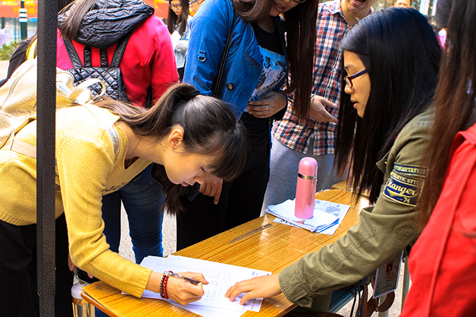 本次宿舍文化活动是信息技术与工程学院团委在新学期的首次活动,干部们也迅速地进入工作状态,在摊位的各种事宜准备就绪后,各位干部积极地投入到宣传工作中。干部们手拿着活动宣传单,在校道上热情地向过往同学介绍“宿战宿决”活动的相关情况。宣传期间正值风雨天气,而干部们在宣传工作中也难免会遭到拒绝或者无视,但干部们并没有因此气馁,而是总结经验,改变宣传方式,继续耐心地向其余同学介绍。渐渐地,干部们的热情讲解也吸引了同学们的关注,并在干部的带领下到摊位处进行报名。