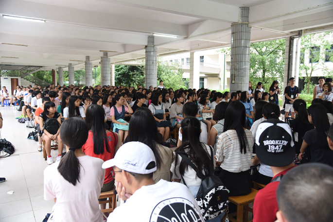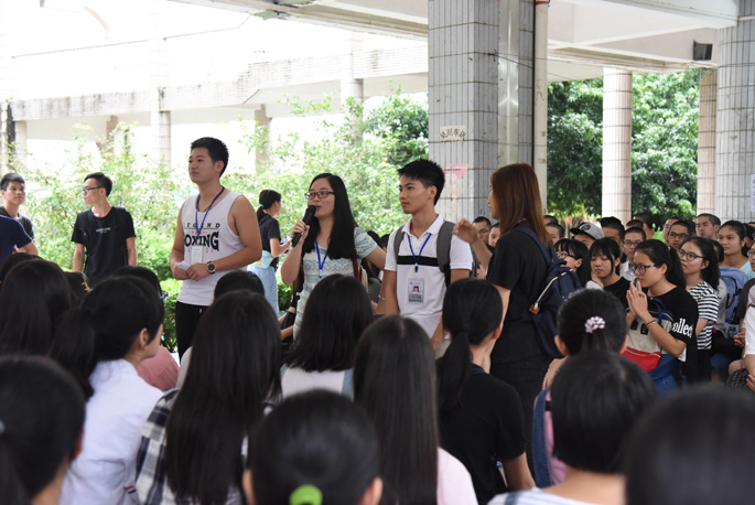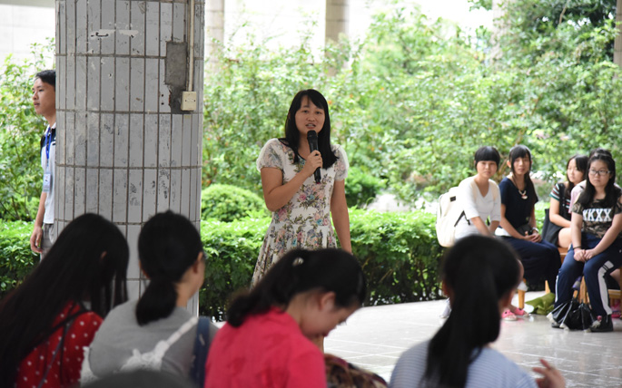 随后,16级辅导员陈素婷老师发表讲话,表示如果新生对学校生活方面有不清楚的地方可以找学长和辅导员咨询,希望新生们在接下来的活动中都能积极配合学长。会议结束后,学长们带各自负责的班级离开,召开班会。