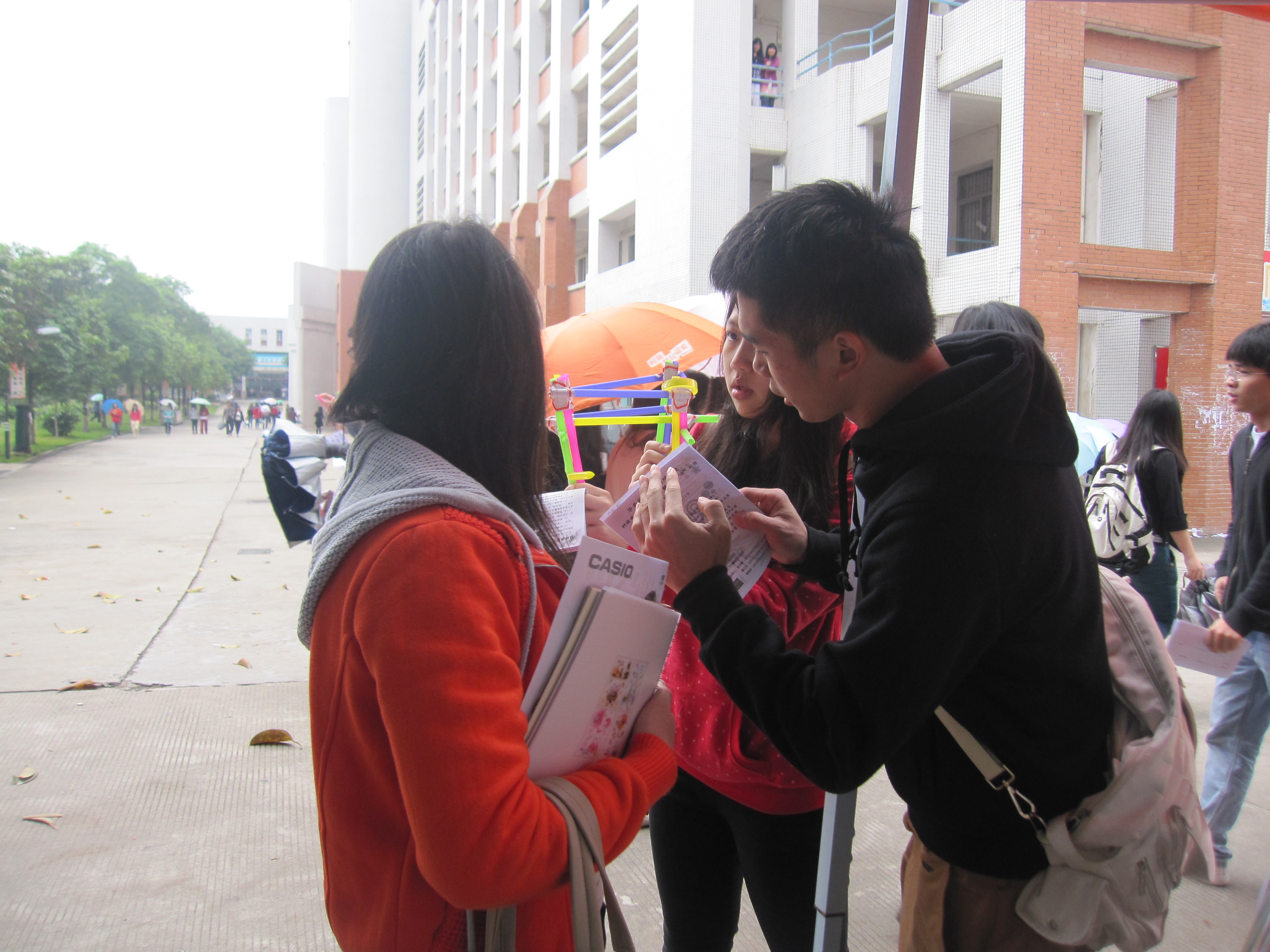 校道上,人来人往。每当看到有同学投来好奇的目光,摆摊宣传的成员们便抓住时机上前对其进行活动讲解,耐心地介绍具体要求和相关规则。此外,为了更好地宣传此活动和吸引更多学员参与,摆摊宣传的成员们少不了主动地向路过的同学们投递宣传单并讲解活动的具体流程。这个过程是艰辛的却又令人难忘的,因为在宣传过程中会遇到形形式式的对白,这都需要耐心和用心的讲解。同样,不是所有的同学都会对此感兴趣,至少他们了解了这个活动的所在,足矣。就这样的磕磕碰碰中,三天的摆摊工作已完满落幕了。看到报名表上那满满的名字,大家都欣慰地笑了。用心付出了,总会有收获的!