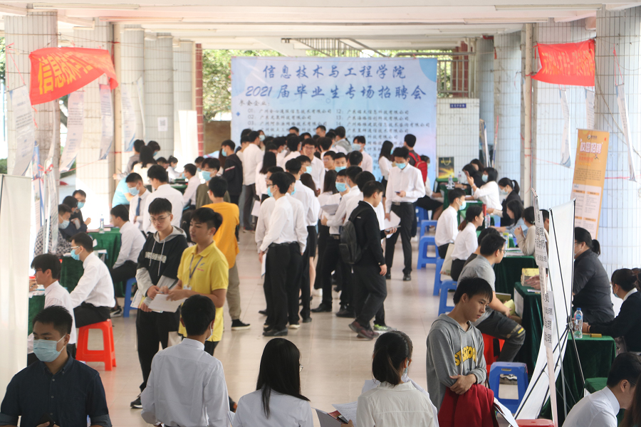 此次招聘会,我院吸引了广州全心通服信息技术有限公司、广东龙泉科技有限公司、广州阿尔法网络技术有限公司等21家企业参与。信息技术与工程学院应届毕业生身着正装,手持精心准备的简历,信心满满穿梭在各个展位之间,将自己最好的一面展示出来。直到下午一点多,所有同学面试结束,招聘会圆满结束。此次招聘会的成功举办,不仅让我院学子得到充分表现自我的机会,而且让他们增长了自身的见识,在以后的学习与工作中有目的培养自己的能力,不断完善自我。广州商学院副校长贾超在招聘上表示,由于疫情缘故,学生工作就业压力大,此次活动给了我院学子就业选择机会,也希望我院学子能够抓住机会,找到一份适合自己的工作,从而实现人生价值。