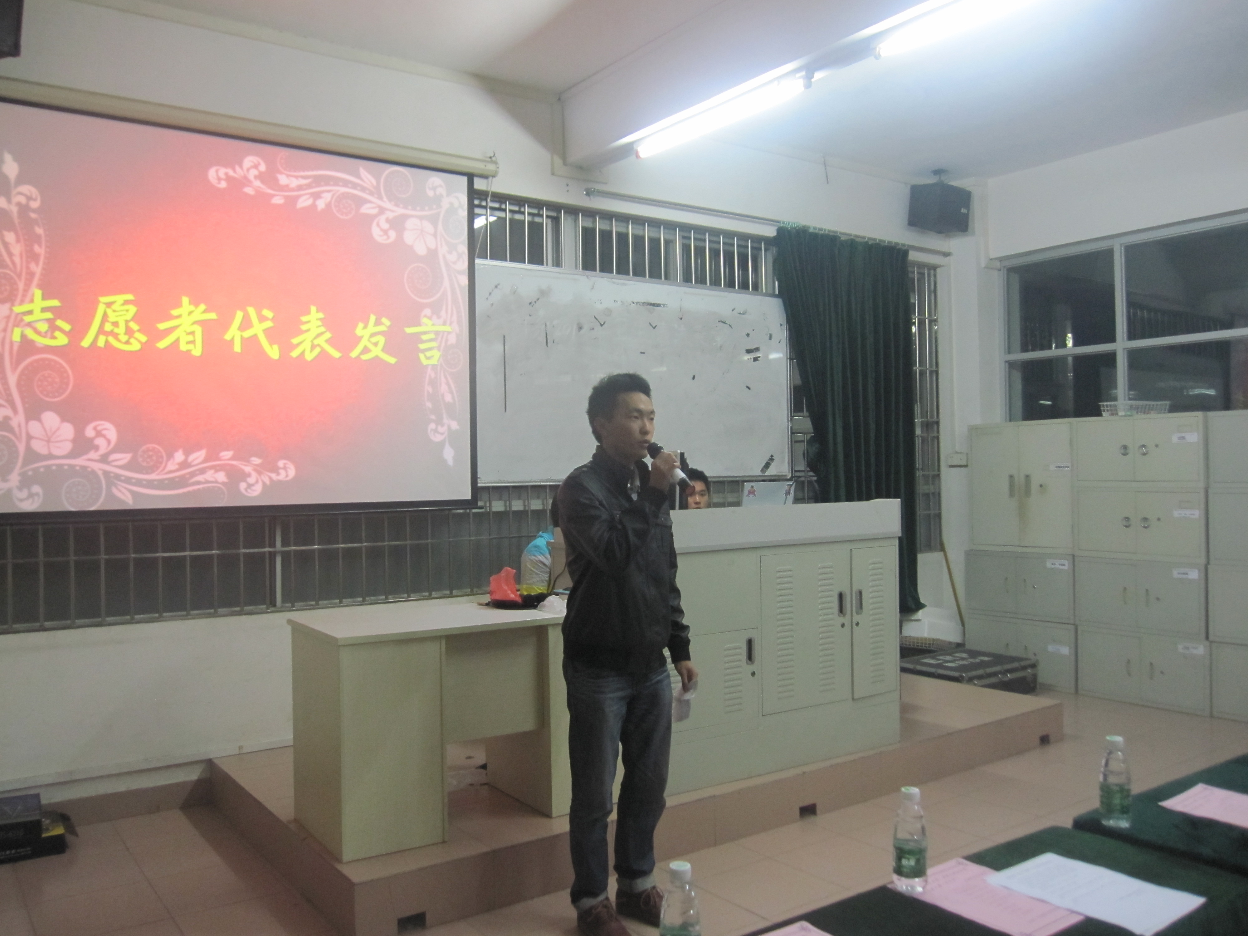 大会开始前夕,一个凝聚着我系三下乡服务队员们在今年暑假三下乡活动中点点滴滴的视频感动上映,带领在场的观众们回顾了那些天的各种美好的回忆。随后,三下乡服务队队长卢俊文同学进行发言,讲述了三下乡带给他无数难忘的回忆以及当地的孩子给队员们留下的种种印象;还指出了下乡活动中的不足和需要改进的地方;一番肺腑之言过后那衷心的感谢和鞠躬感动全场。在热烈的掌声中迎来了志愿者代表李炜栋同学和潘凤君同学发表感言,他们都讲述了三下乡的深刻意义和带给大学生的是一个锻炼机会,还说到了在活动中人与人之间的沟通交流在下乡中的重要性。感慨的话有千言万语,但尽在不言中。问答环节中大一的新生们都问到一些有关于三下乡活动如何参加,参加者应具备哪些要求等问题,服务队的师兄师姐们都耐心地一一解答。