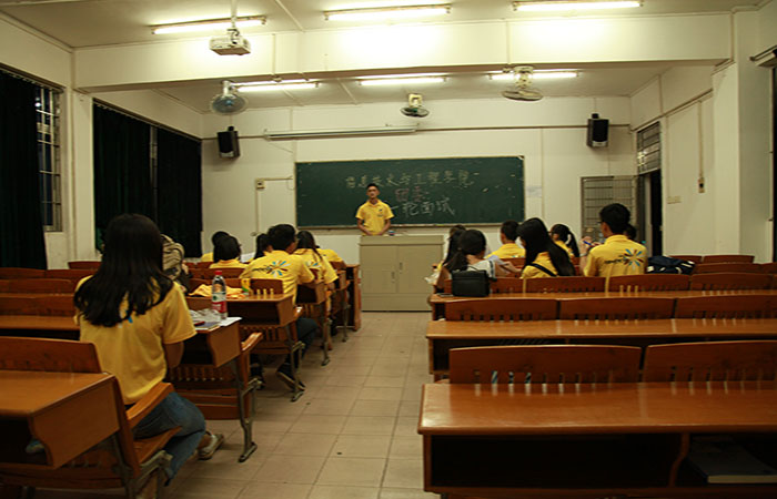 下课铃声的余音尚未散去,上身着黄色工作服的身影便早早地在康大C2栋教学楼课室之间忙碌了开来,无论是各部门面试位置的安排、报名表的核对,亦或面试前各部门内部最后的交流,在一切准备就绪后,信息技术与工程学院团委第一轮面试于2015年10月9日18:45在C2教学楼307和308课室中井然有序地进行着,也在略显紧张的气氛中拉开了序幕。