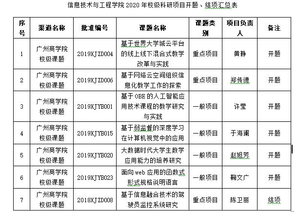 信息技术与工程学院于6月12日下午在六教205召开2020年校级重点、一般科研项目开题及2018年校级课题结项论证会议。会议目的为加强学院科研项目的过程管理,提升教师科研水平,保证科研项目顺利实施。学院姜灵敏、朱晓青、许薇、伍毅和阿拉拇5位教授担任本次评审专家,姜灵敏教授担任评审组组长并主持会议,各项目负责人出席了本次会议。