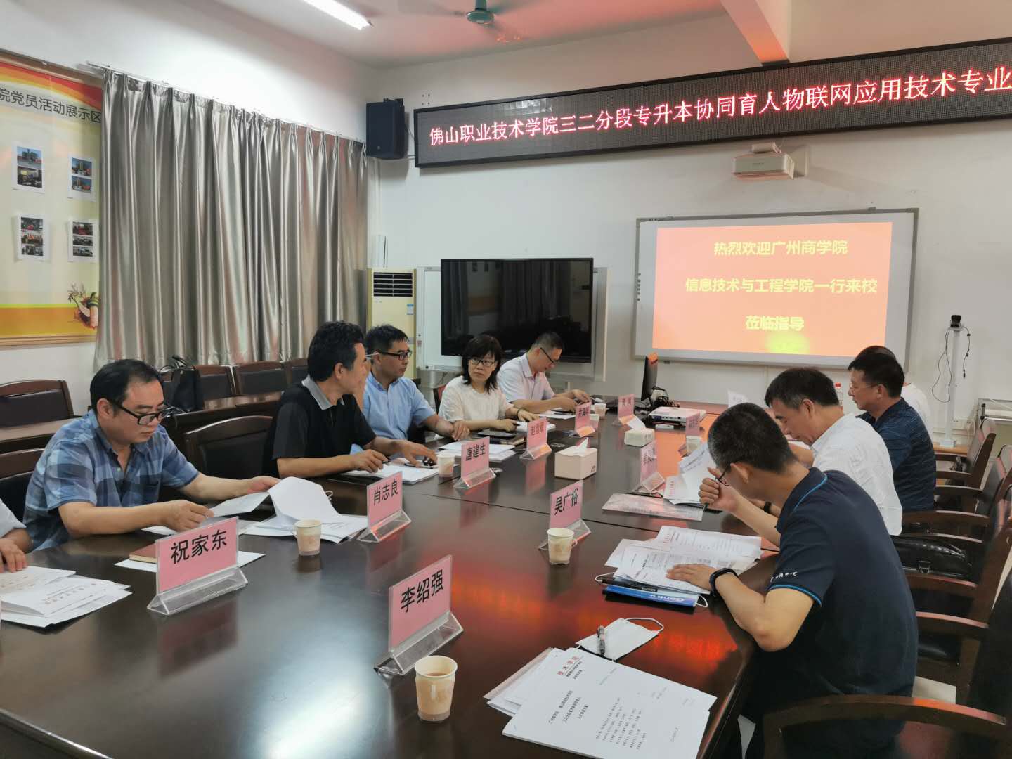为进一步做好我校物联网工程专业与佛山职业技术学院物联网应用技术专业三二分段专升本协同育人项目工作,7月15日上午,我校信息技术与工程学院姜灵敏院长、吴广裕副院长、物联网工程专业负责人熊茂华教授、物联网工程专业李绍强及梁建军老师一行赴佛山职业技术学院开展物联网工程专业“专升本协同育人”办学模式研讨。这是既软件工程专业之后又一跨校专本协同培养的试点专业。佛山职业技术学院电子信息学院院长唐建生、信息工程系主任乔海晔等领导教师热情接待了我校一行。