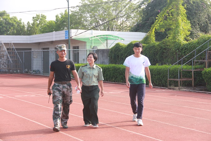 训练场上看到烈日炙烤下学生的军姿,他们依旧在坚持,看到身体疾病困扰着他们,他们依旧在坚持,看到他们经受的磨练,她为他们心疼;学生的队列动作从会到熟,学生的军体拳从学到精,学生踢正步从乱到齐,看到了他们的进步,她为他们高兴;学生从不断地抱怨到心存感激,学生从懒散到纪律严明,看到他们的成长,她为他们骄傲。