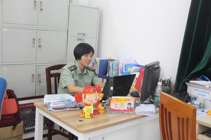 开学准备工作、迎新、体检、军训、宣传、内务、入学教育、安全知识讲座,信息学院辅导员王轻纱像停不下来的陀螺,二十四小时围着新生打转。她用简单的方法,将这些繁杂的事务统筹合理安排,使得所有事务能够有条不紊地进行。军训期间,她每天往返于训练场与办公室之间,既要负责共青团的工作又要处理好新生的大小事宜,她量力而行,做好自己的份内工作。
