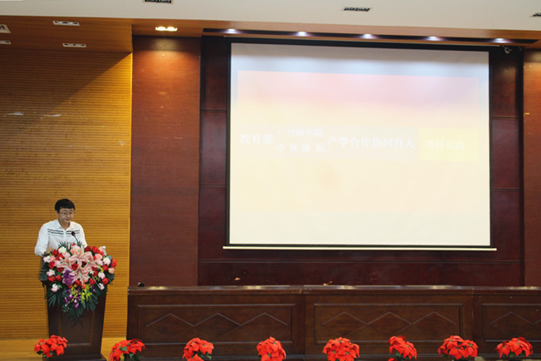 2017年4月20日16:30,广州商学院、中软国际-教育部协同育人项目揭牌暨启动仪式在第四教学楼第一报告厅隆重举行。莅临本次活动的嘉宾有学校方代表:广州商学院副校长刘根正、校长助理贺浪萍、信息技术与工程学院院长姜灵敏、副院长吴广裕、副院长周程,党总支书记林俊杰;企业方代表:中软国际(华南区)副总经理戴劲、中软国际(广州)院校合作部总监吴瑞龙、技术部总监曾智、合作部区域经理宋达、邹文德,以及广州商学院信息技术与工程学院的老师和大二大三学生。
