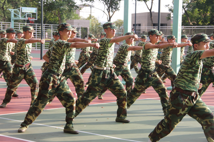 又是一天艳阳时,口号、步伐与汗水已然成为信息技术与工程学院16级新生每日刻苦训练的标志。我院新生分为男女两个方队,分别训练齐步和军体拳。