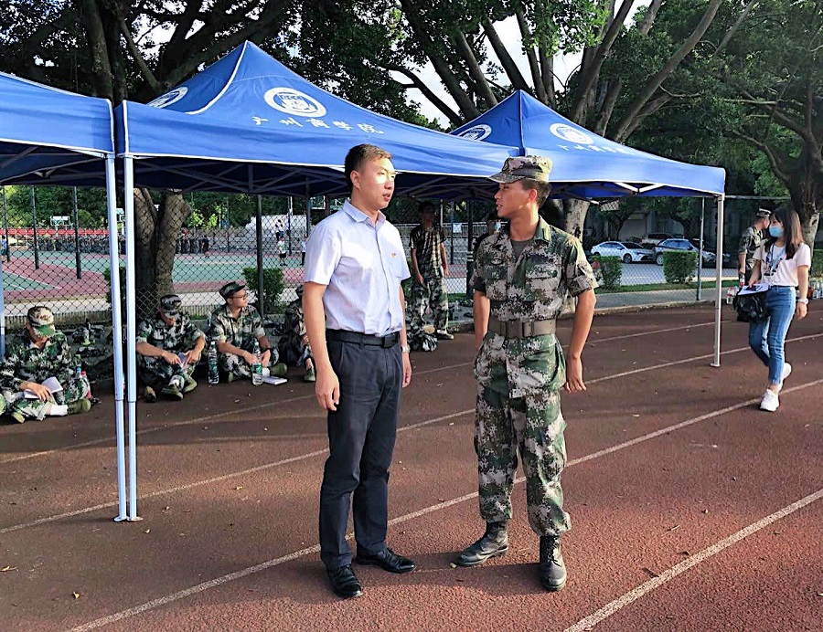 希望新生们在接下来的军训生活中再接再厉,把青春融入中国梦,用奋斗与汗水浇灌梦想,做一名优秀的广商人!