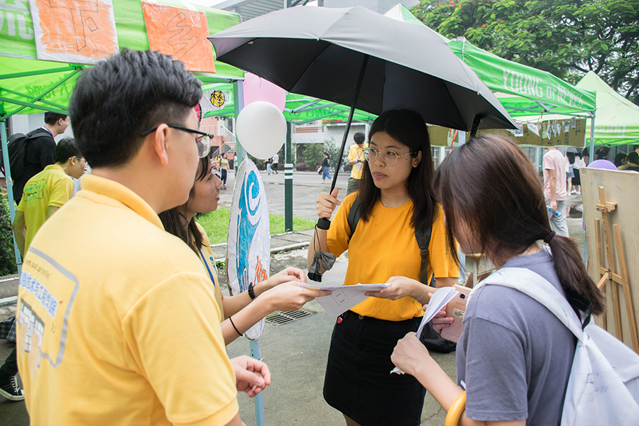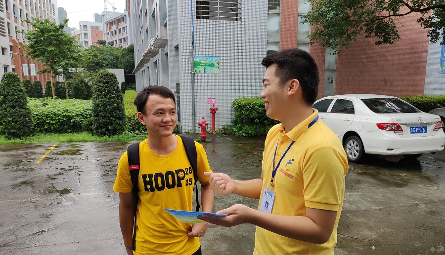 在本次暑期三下乡社会实践活动宣传中,我院团委的工作人员们在三栋公寓楼下驻扎宣传摊位,并且在校园内的各个主干道边设立了流动宣传岗位进行线下宣传,同时还在网络上开放了线上报名平台。在筹划准备期间,工作人员们各自分工明确、配合默契。虽然偶有雨滴坠落,但工作人员们的热情丝毫未减,依然积极宣传。这也吸引了不少来往的同学们驻足询问,而工作人员们则耐心地为其答疑解惑,并将有意向参与此次活动的同学们带往摊位点进行报名。一时之间,来往于人潮之中进行宣传的信院小黄人便成了校园内一道靓丽的风景线。