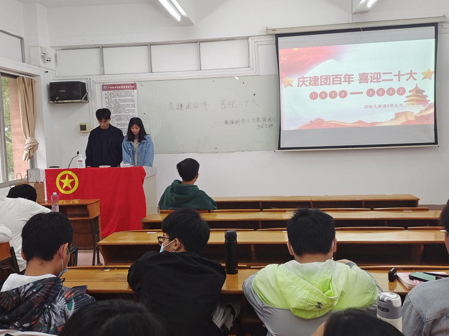 为迎接党的二十大胜利召开,热烈庆祝中国共产主义青年团成立100周年,引导团员和青少年理解党领导青年奋斗的光辉历程,感受党领导下青年的成长和蜕变,2020级数据科学与大数据技术3团支部于4月1日在第三教学楼108室开展了“喜迎二十大、永远跟党走、奋进新征程”团日活动。出席本次会议的有大数据2003班班主任周思浩。会议由宣传委员林漫、文娱委员蔡锐主持。